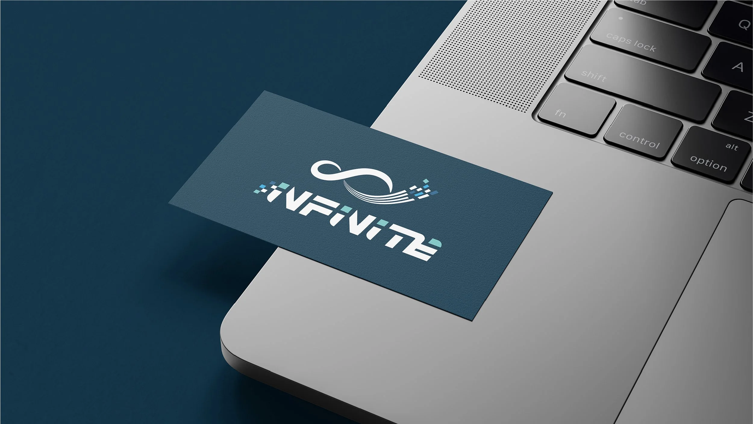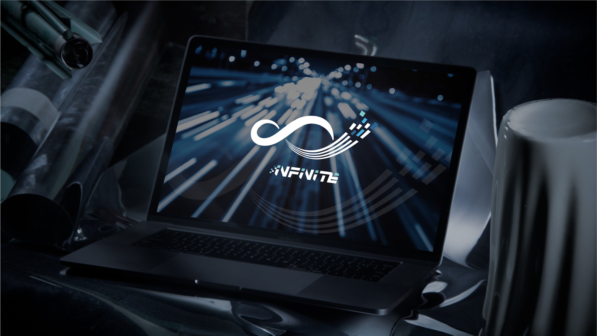 宇宙光纖 INFINITE品牌識別核心以無限符號(∞)作為主體,承載品牌名「INFINITE」的精神,無限符號右側延伸出的多道光纖曲線,轉化為數據穿透的軌跡,更象徵光纖通訊最關鍵的精神,訊號無邊無際,以光速自由流動。