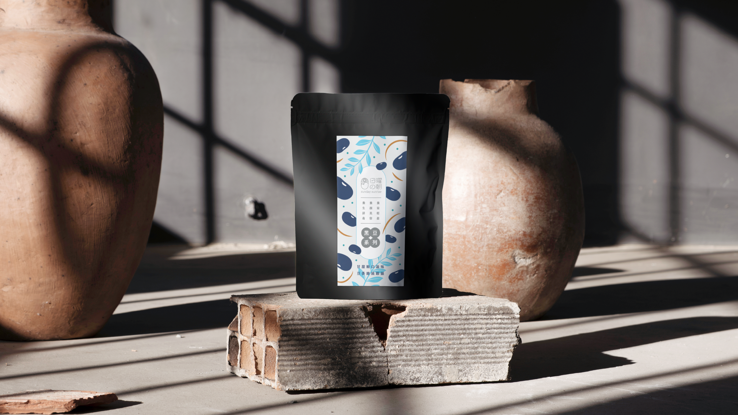 日曜の朝 Sunday Sunrise結合「太陽、日字、黑豆、朝雲」四大元素,打造出簡約且具輕透感的視覺印象。