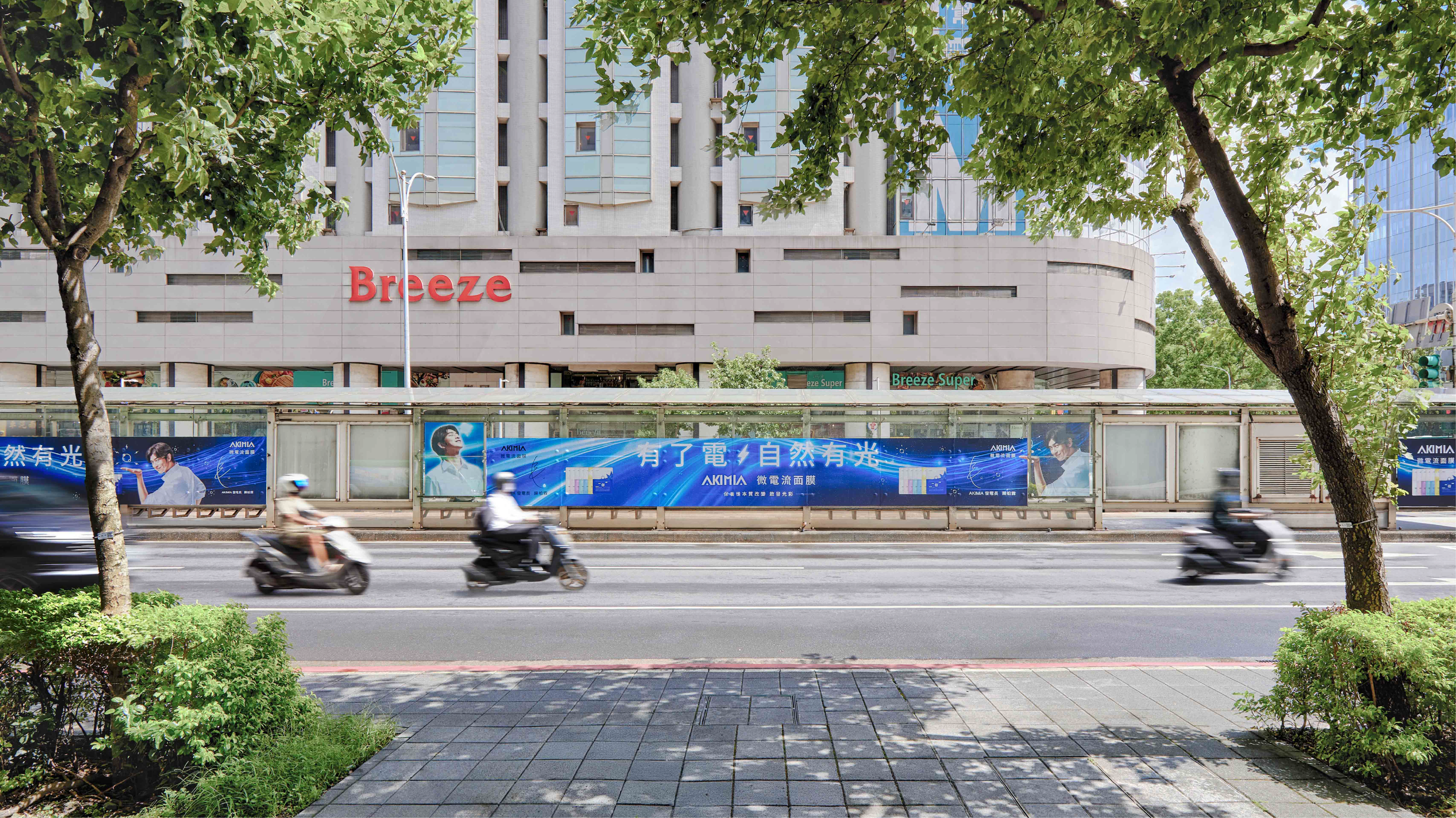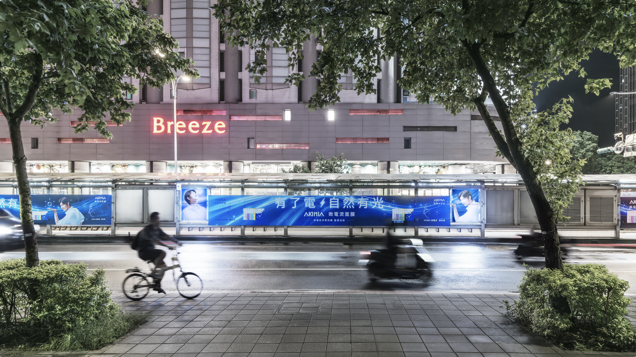在戶外媒體部分,我們於台北捷運忠孝復興站規劃了三層樓高的左右側手扶梯巨幅廣告,利用垂直動線與能量流線互相呼應,創造沉浸式的視覺包覆感;同時在台北小巨蛋前執行超長公車亭廣告,將能量光束拉長為城市尺度的流光帶,使平面視覺在戶外空間中形成連續、壯闊且極具記憶度的品牌畫面。