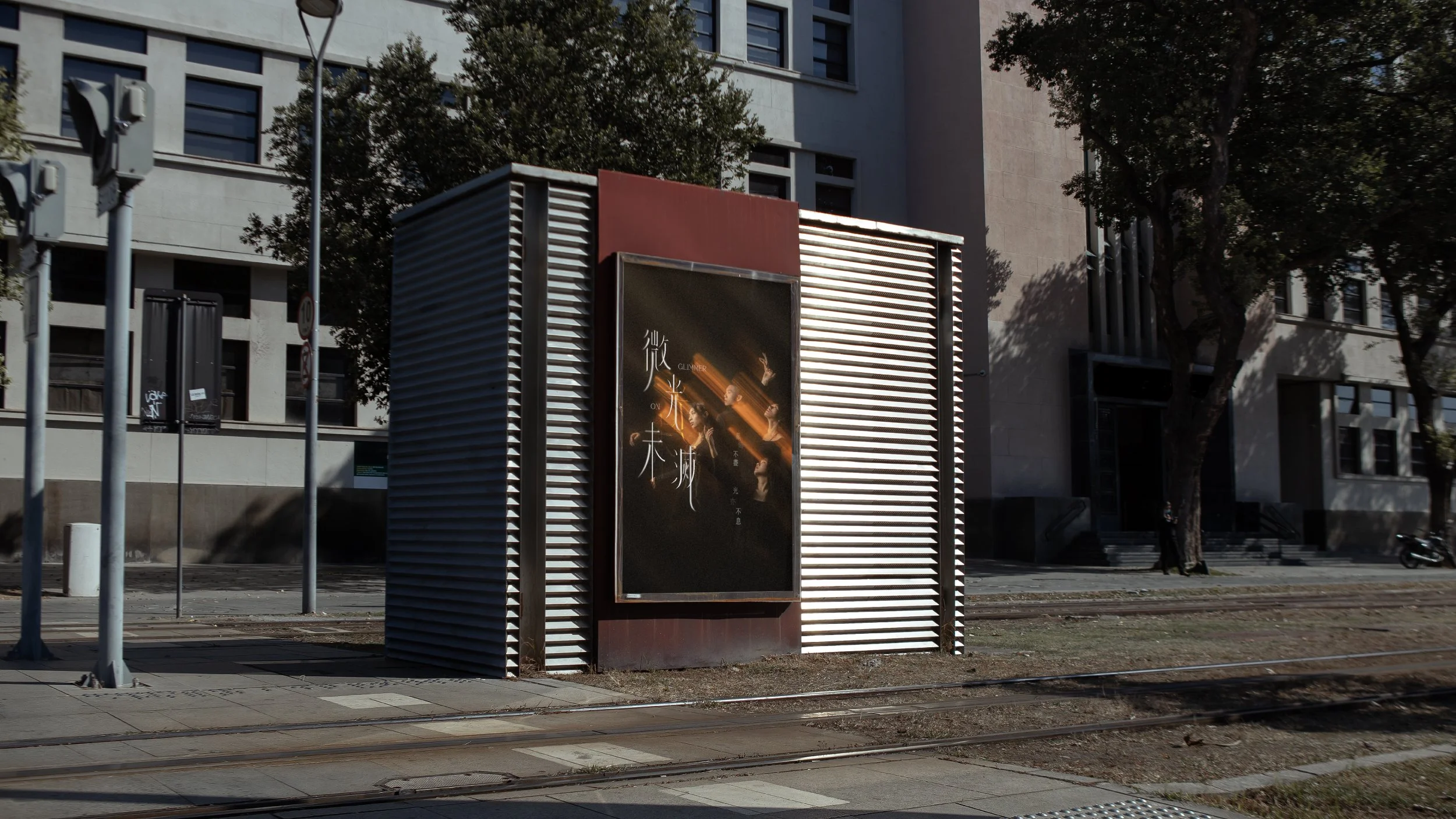 文字排版採用垂直流動與錯位的設計手法,凸顯光影殘痕的質感與氛圍張力,文字的透明度層次變化,則模擬黑暗中尚未熄滅的微光閃動,讓觀者感受到光影在消逝與延續之間的張力。